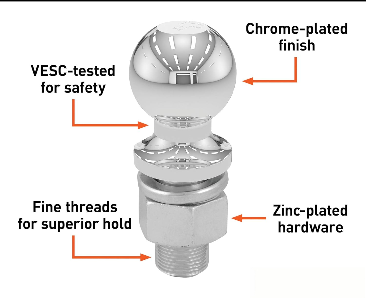 *Trailer hitch ball is constructed from hot-forged steel with a 1.75 ton (3,500 lb) gross trailer weight
